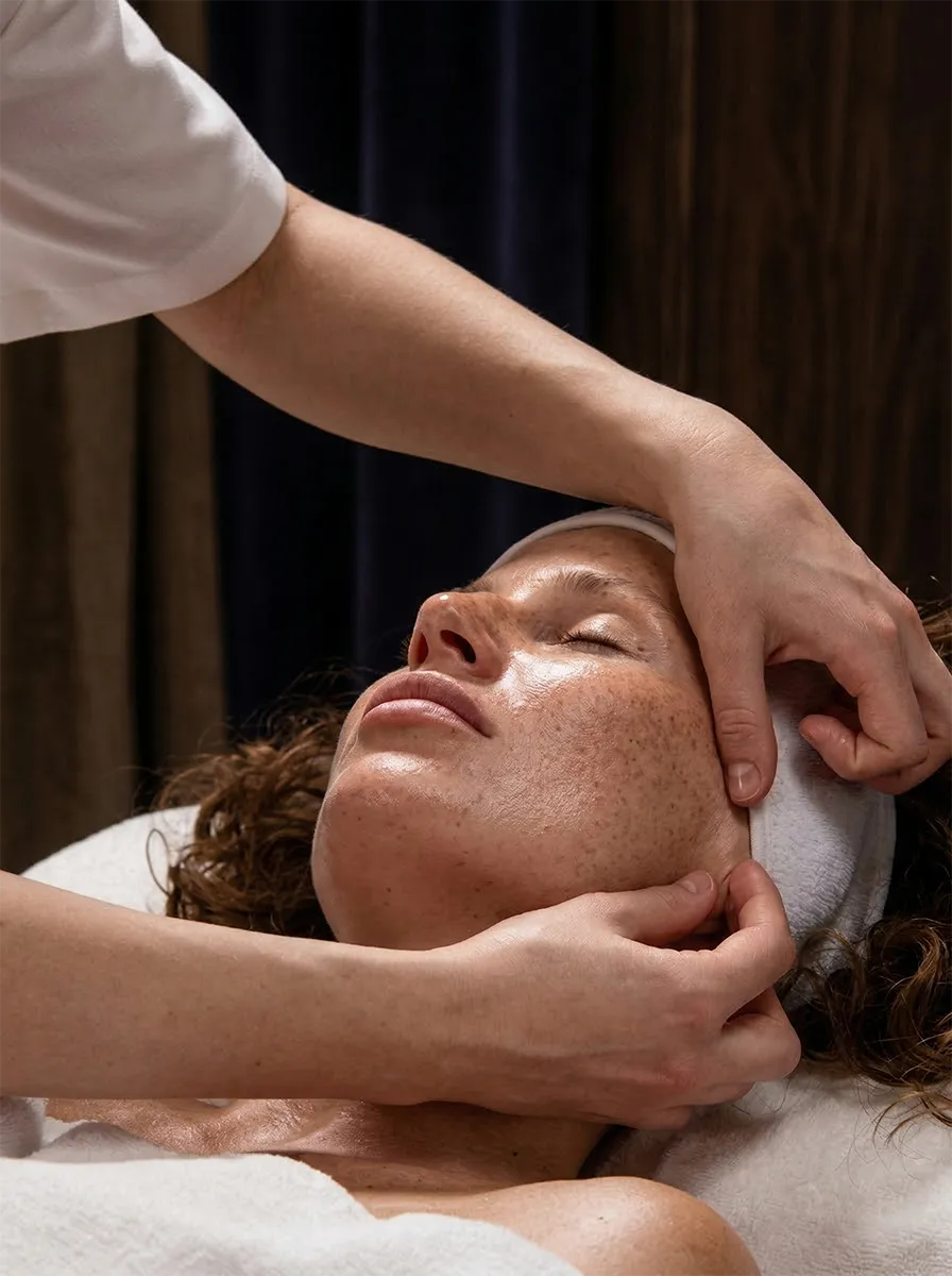 Одна из самых эффективных техник для работы с жевательными мышцами — скульптурно-буккальный массаж лица. Мастер прорабатывает мышцы не только снаружи, но и изнутри — через ротовую полость, добираясь до глубоких слоев, которые невозможно проработать при классическом массаже. Скульптурная техника дополняет работу — моделирует овал, подчеркивает скулы, возвращает лицу четкий контур.